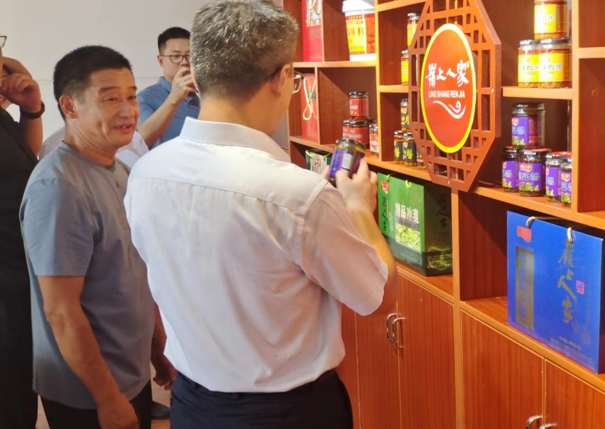 在會議室,劉縣長一行特意品嘗了嶺上人家的新品紫蘇醬,表示了贊許,鼓勵企業(yè)多多研發(fā)新品。